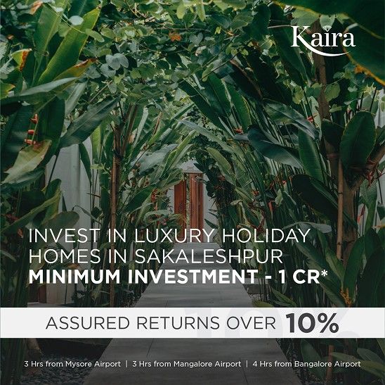 Tucked away in the serene, emerald landscapes of Sakaleshpur, Kaira’s luxury holiday homes offer a rare investment opportunity for those seeking both leisure and long-term financial growth. Surrounded by dense greenery and tranquil natural pathways, these premium villas are designed to provide a rejuvenating escape from the urban rush while promising modern elegance and comfort. With a minimum investment of ₹1 crore, buyers not only gain access to an upscale retreat but also enjoy assured returns of over 10% — a combination of lifestyle and profitability that’s hard to match. Strategically located just a few hours from Mysore, Mangalore, and Bangalore airports, these properties offer excellent connectivity while remaining peacefully secluded in nature’s lap. Whether you're looking to diversify your portfolio, own a second home, or step into the growing luxury eco-tourism market, this is an investment that offers tangible returns and an unmatched experience.
